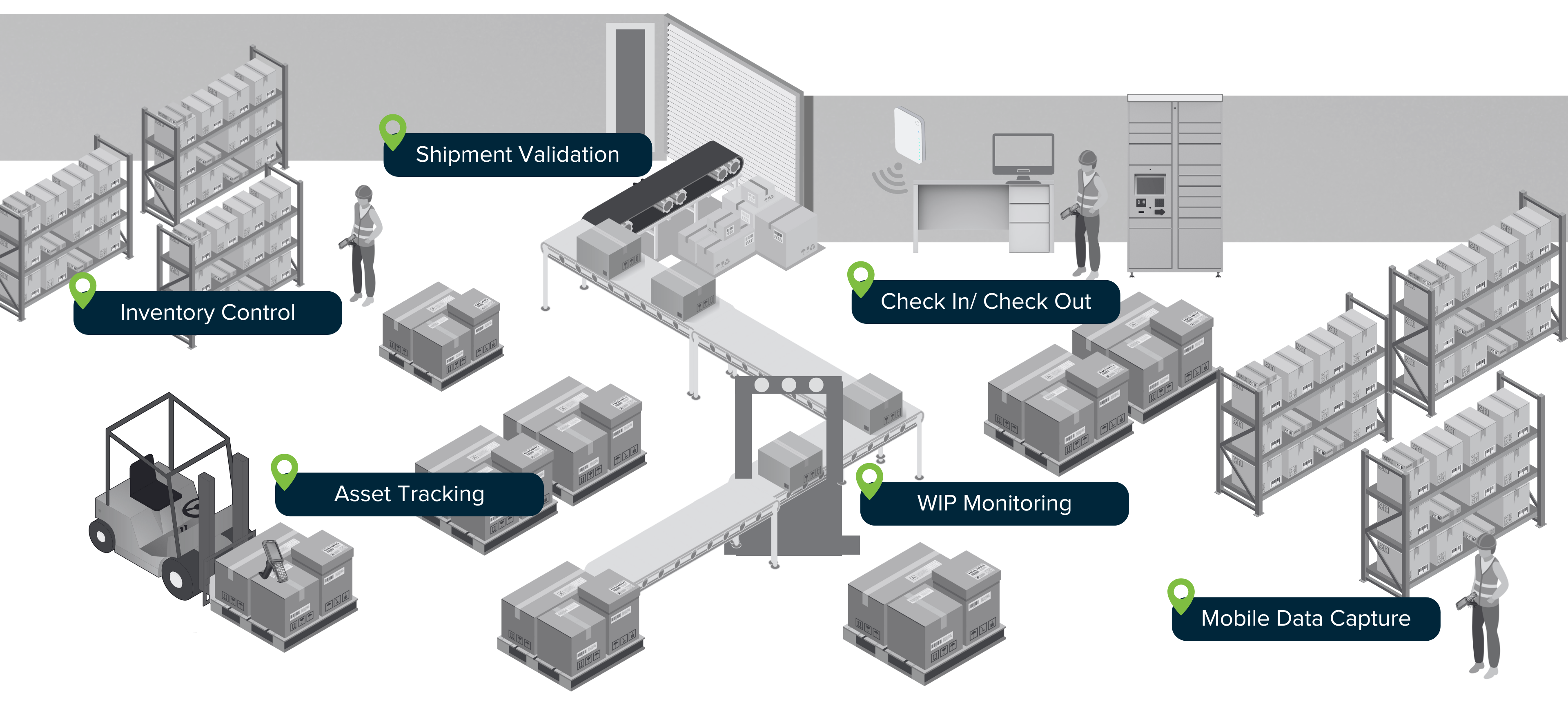 Inventory Management – Maintain accurate inventory records and track stock as it moves in, out, and around your facility. Using RFID for inventory management improves data accuracy and slashes the time and money spent on cycle counts and audits.